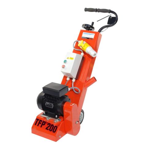 De kleinste debikmachine in de TFP serie is het compacte en wendbare model de TFP200. Deze machine is ideaal voor kleine tot middelgrote opdrachten. Het met ribbels versterkte stalen chassis zorgt voor een sterke stabiele machine. Zeer geschikt voor het voorbereidende werk zoals het schoonmalen en opruwen van betonnen en stalen oppervlakken. Het verwijderen van coatings, egaliseren en opruwen van beton en vloeren.