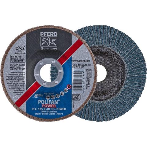 PFERD POLIFAN®-lamellenslijpschijf PFC 125 Z 40 SG-POWER STEEL-INOX/22,23